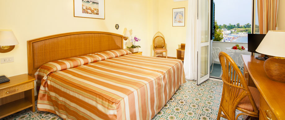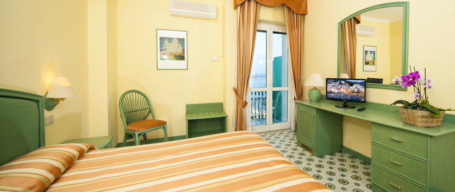 Incantevole è il panorama che si ammira dalla terrazza di queste camere, dal golfo di Napoli all’isola di Procida. I colori freschi degli arredi curati nei dettagli, la vista del mare e del paesaggio permettono di godere a pieno della bellezza, dei profumi e della magia dell’isola. Sono dotate di aria condizionata, telefono, Tv con una selezione di canali nazionali ed internazionali, minibar, cassaforte. Bagno con vasca o cabina doccia e asciugacapelli.